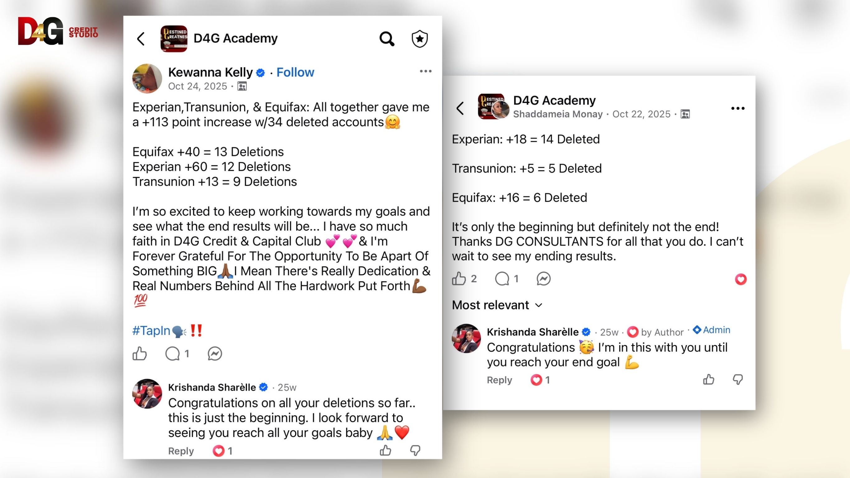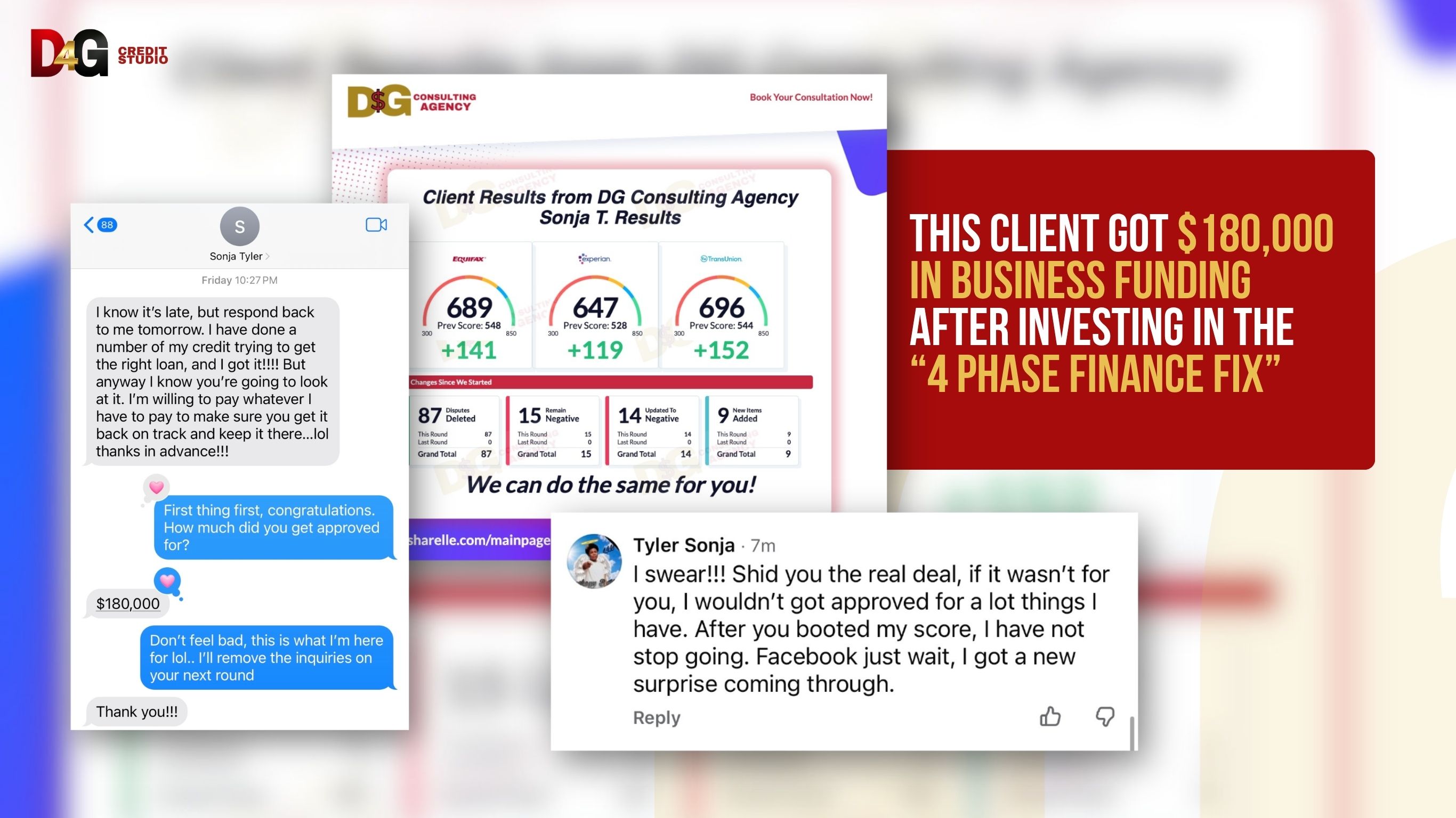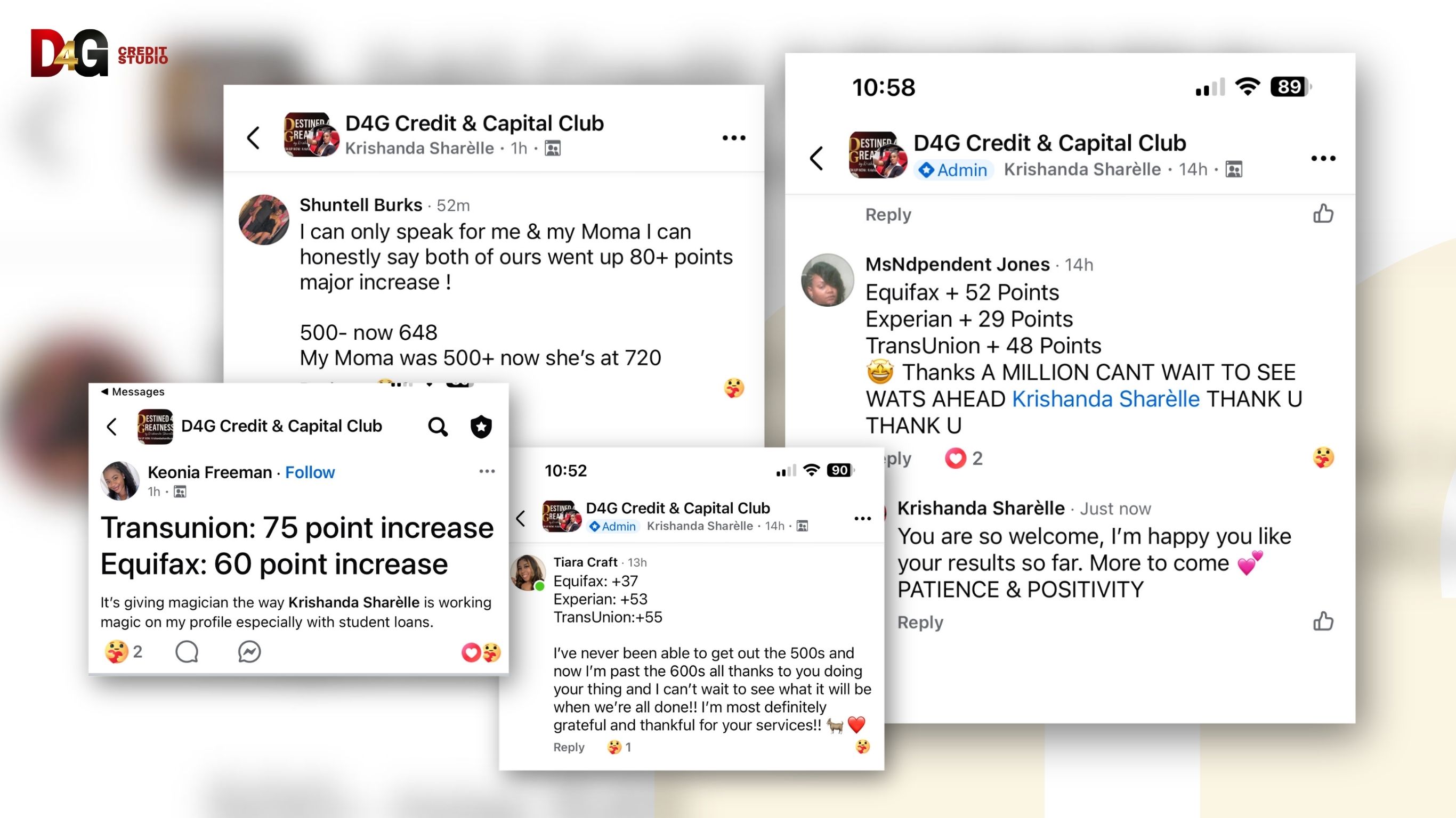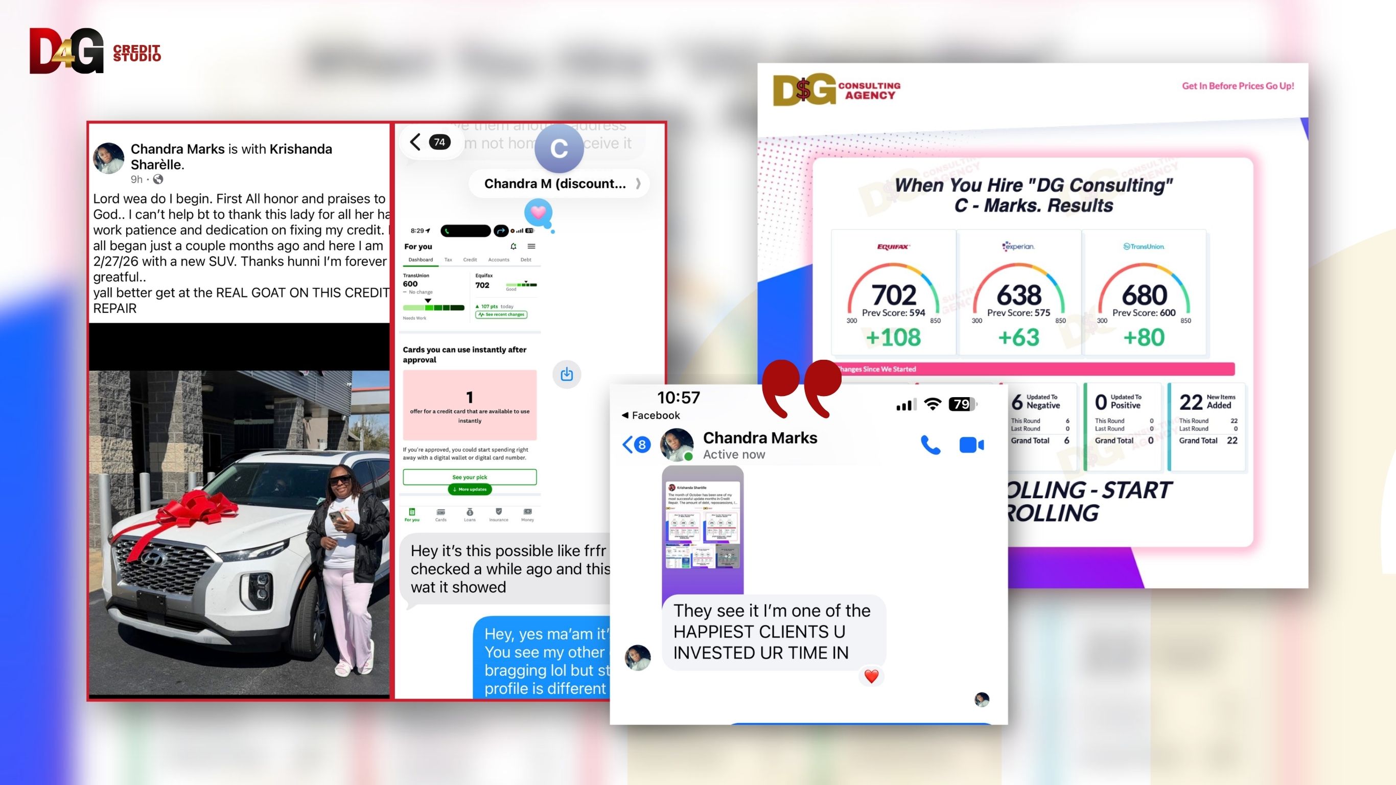 Disclaimer: This website is not affiliated with or endorsed by Meta Platforms (Facebook or Instagram). All information, services, and education provided are intended to support your financial journey. Results are not guaranteed and will vary based on your effort, accuracy of information, and overall financial behavior. Testimonials and success stories reflect real client experiences but are not typical or guaranteed outcomes. D4G Credit Studio provides educational tools and optional service support to help you take control of your credit. Results depend on your consistency, decisions, and commitment.